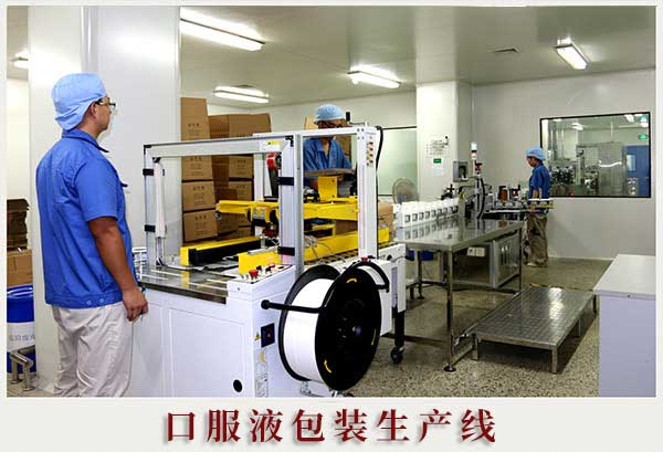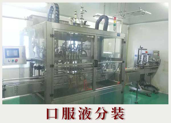 口服液产品在十万级洁净区生产,采用自动空气净化系统,对生产线尘粒、压差、风速进行监控,保证生产环境的高度清洁。口服液的生产从称量到装箱引进多功能灌装机、自动搓盖机、电磁封口机、多功能贴标机、打包机等设备,实现了生产线的完全自动化,生产线能适应不同规格的方瓶、圆瓶、异形瓶,能适用50-5000ML的装量灌装要求。灌装机采用脉冲控制活塞定量方式,灌装精度高,调节智能简便,生产效率高。车间年产量600万瓶以上,为动物保健提供优质高效的口服液产品,产品远销亚洲、非洲、欧洲、美洲等几十个国家。